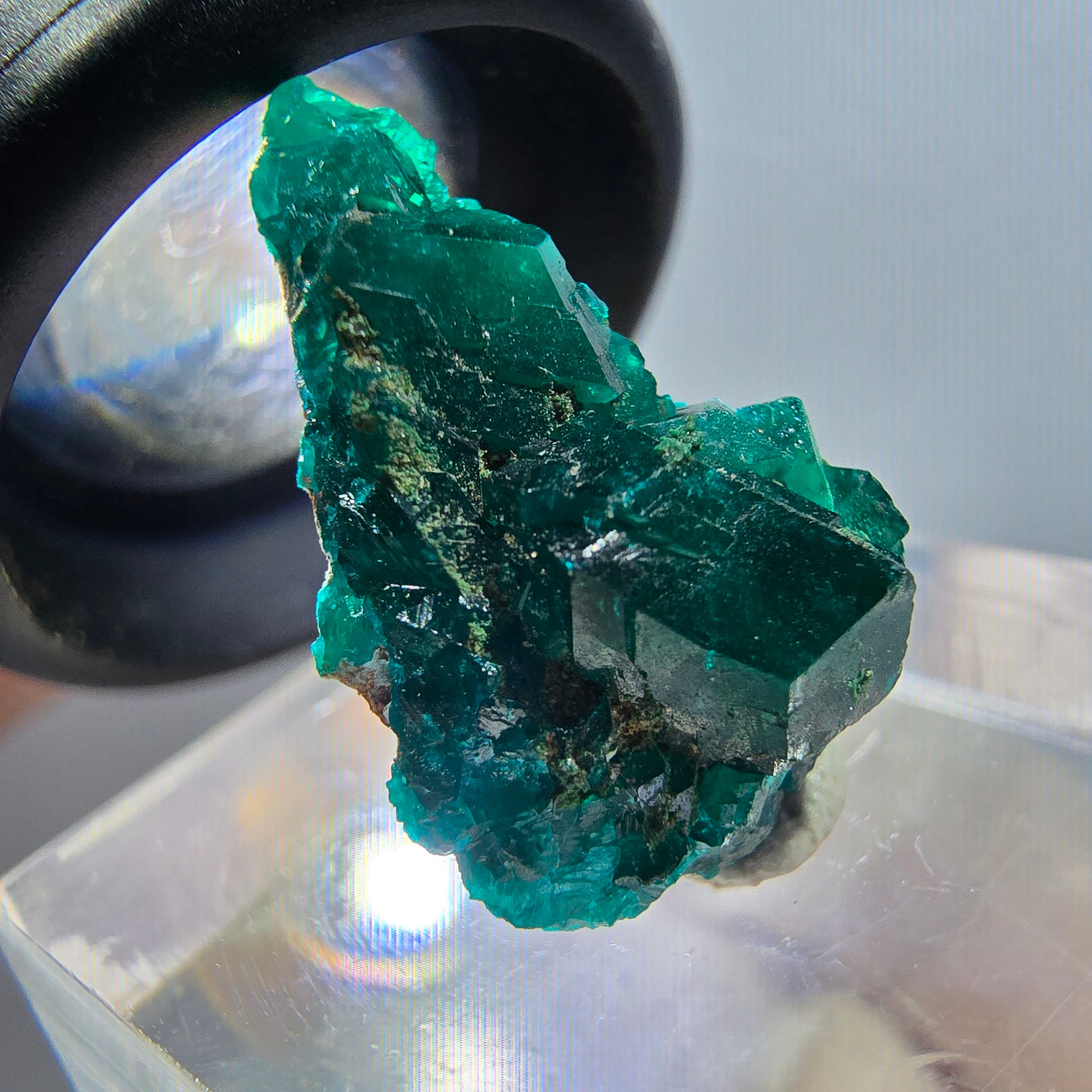 Seltene Dioptas XX Stufe aus der Republik Kongo in atemberaubendem Grün. Diese hochwertige Mineralienstufe präsentiert ausgeprägte, dunkelgrüne bis türkise, kantig gewachsene Dioptas-Kristalle in perfekter Qualität. Maße: 21x15x10 mm, Gewicht: 2,9 g.