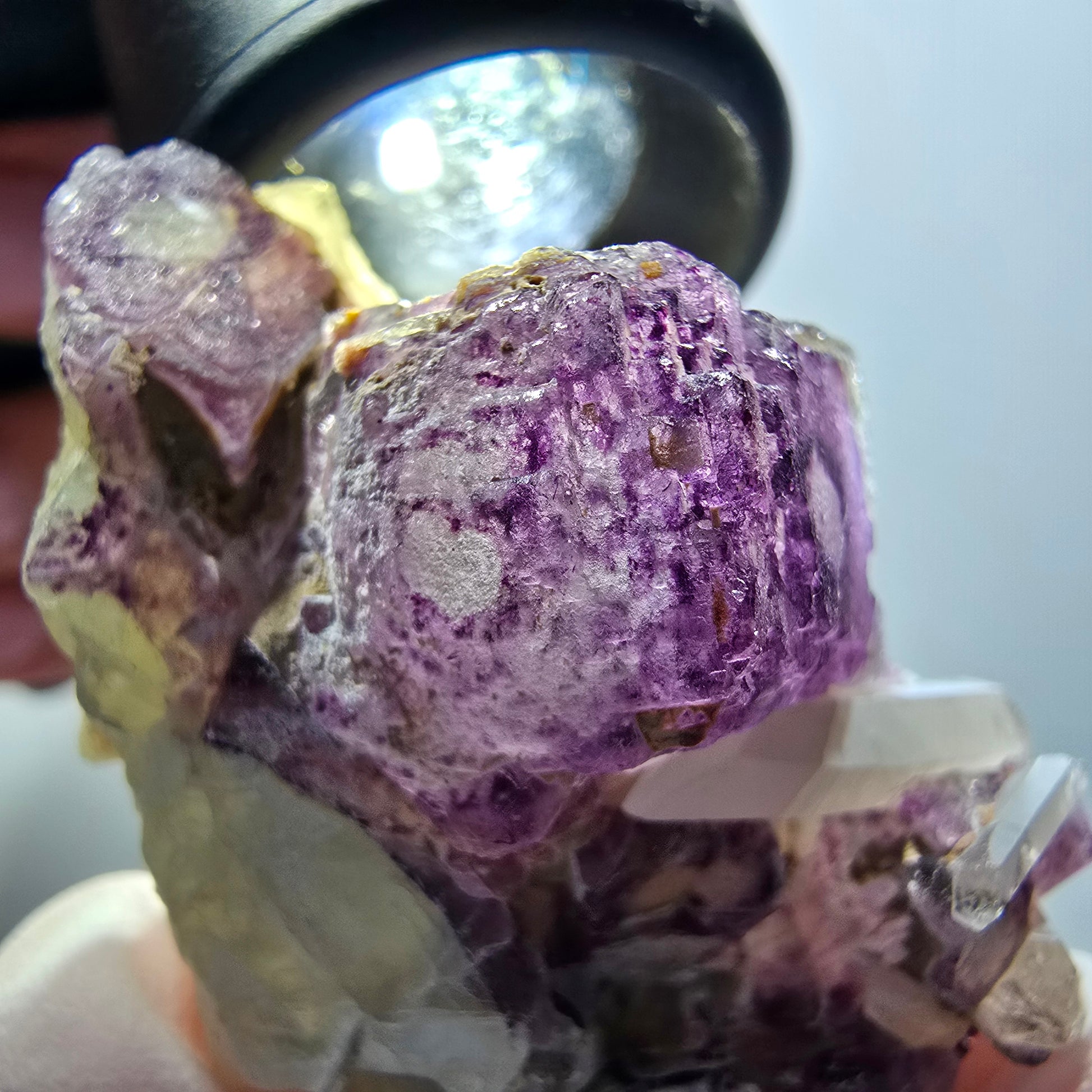 - Mineral: Phantom Fluorit Würfel auf Quarz Stufe
