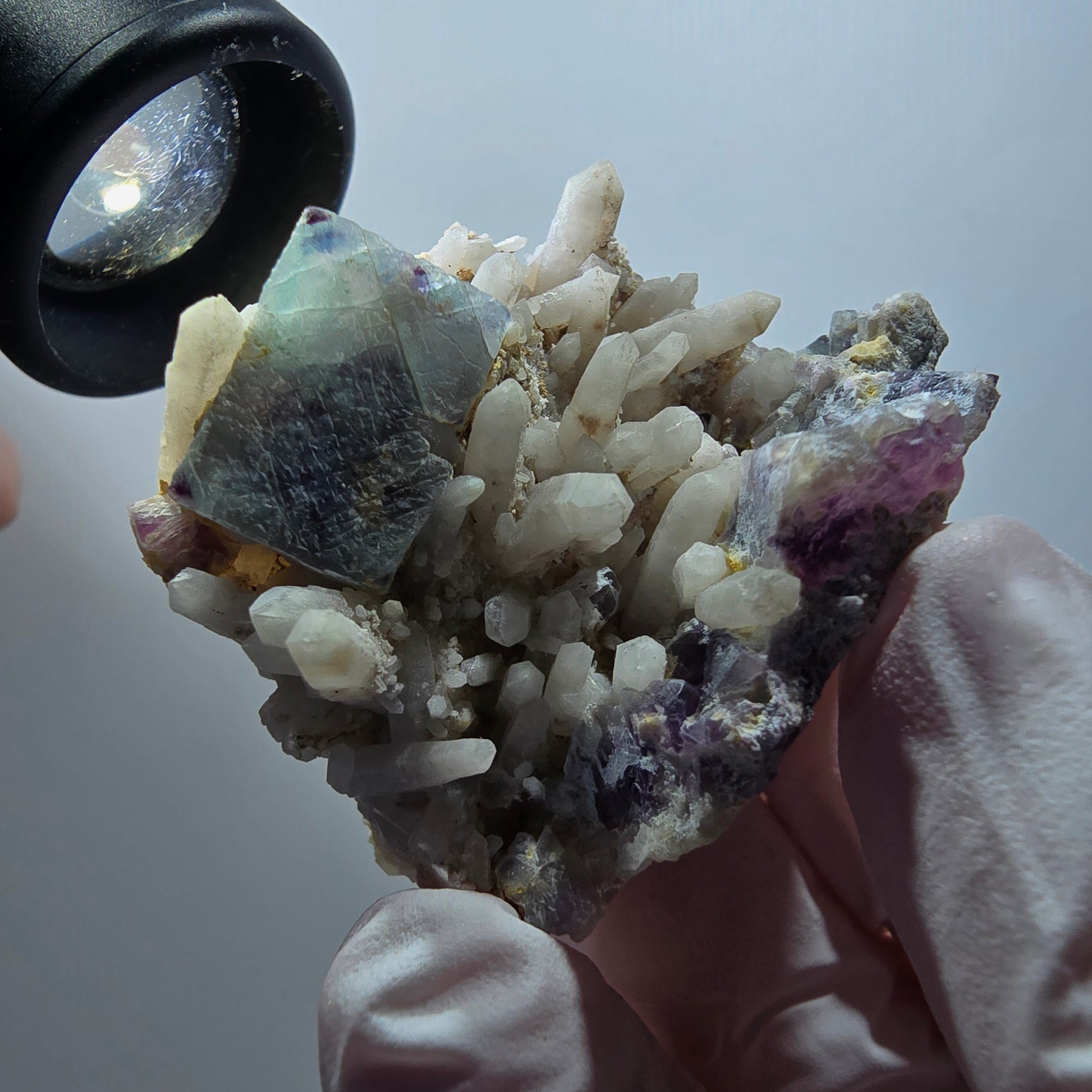 - Besonderheit: Grüne und lila Phantome im Inneren, weiße Quarzspitzen