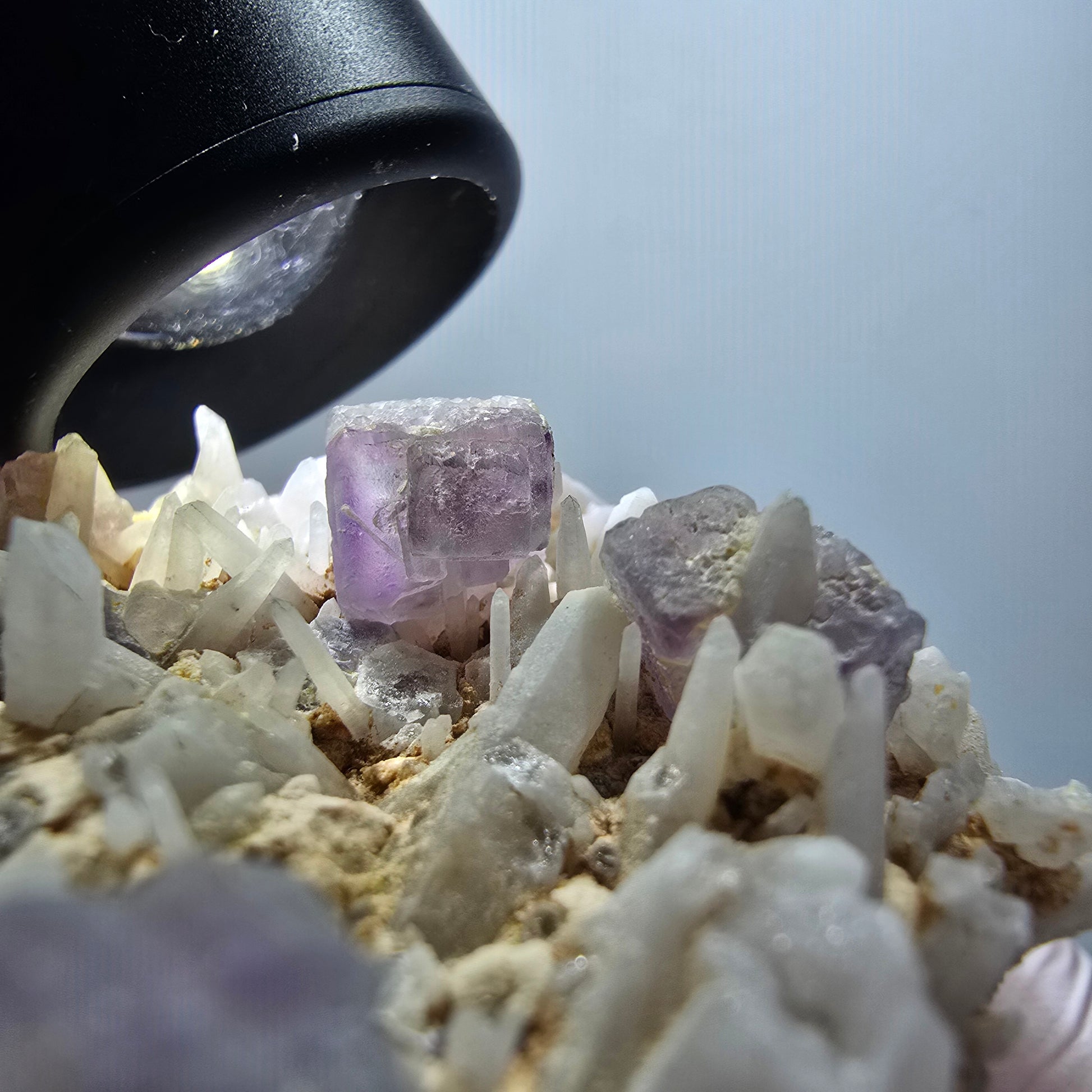 - Mineral: Phantom Fluorit Würfel auf Quarz Stufe
