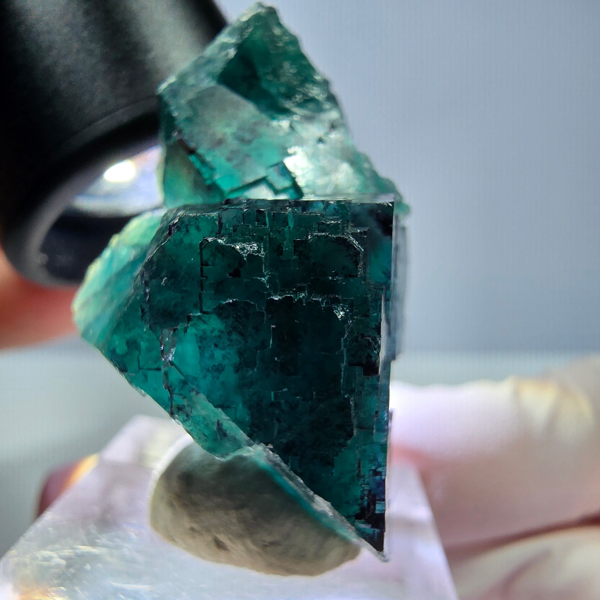 Die Kombination aus seltener Farbzonierung und klaren Phantomstrukturen macht diese Fluorit Stufe besonders attraktiv für Mineralienliebhaber.