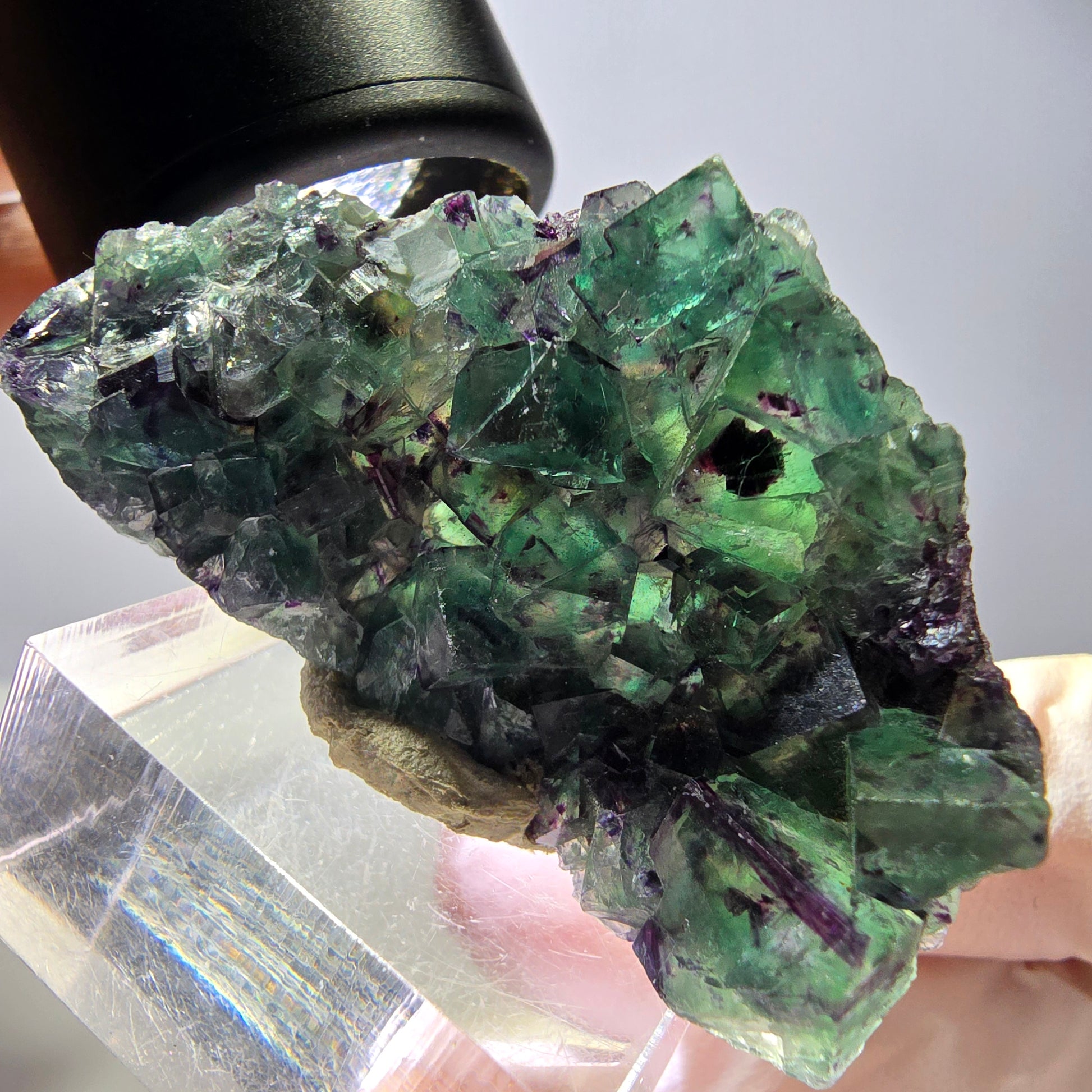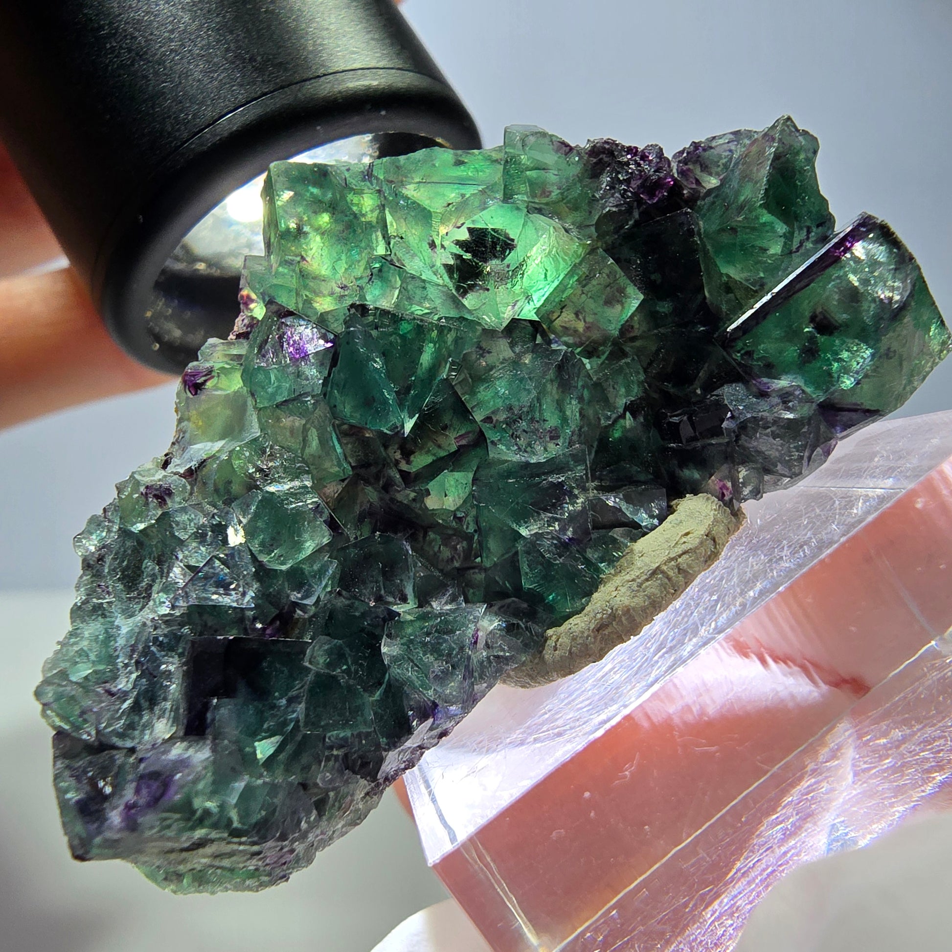 Besonders die klare Farbzonierung und die deutlich sichtbaren Phantome machen diese Fluoritstufe zu einem außergewöhnlichen Sammlerstück von hoher Qualität.