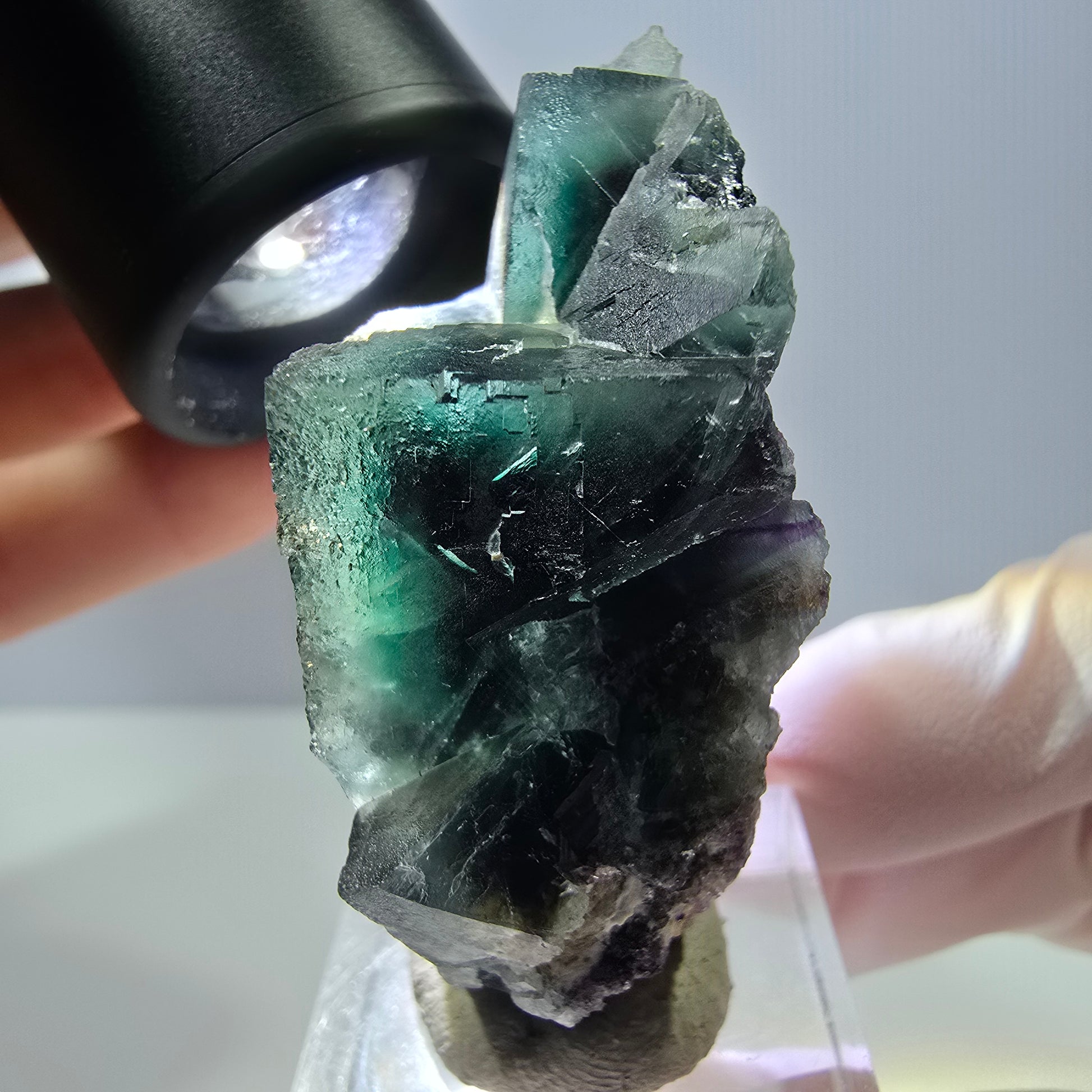 Das klare Kristall in Würfelform zeigt eine exquisite Farbverteilung und innere Strukturen, die jeden Mineralienfreund begeistern. Die Kombination aus Seltenheit, Größe und Farbintensität macht dieses Exemplar besonders wertvoll.