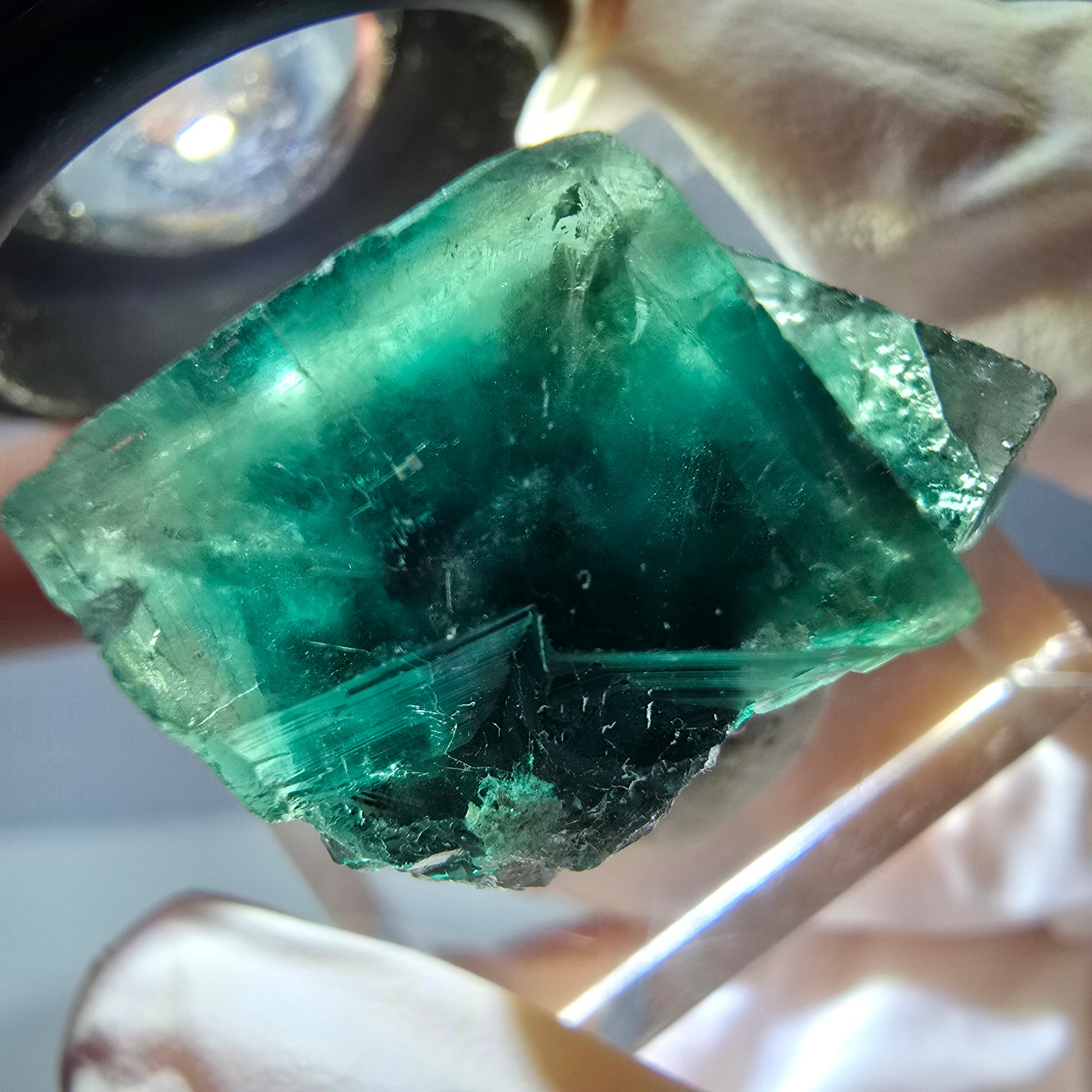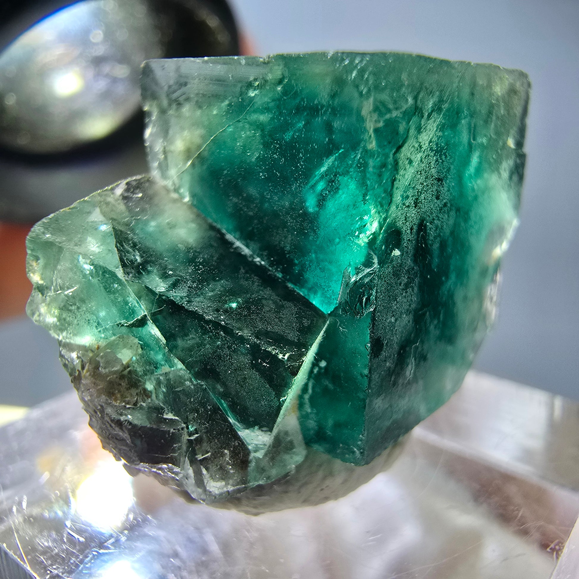 - Seltene, grün transparente Fluorit Würfel Stufe