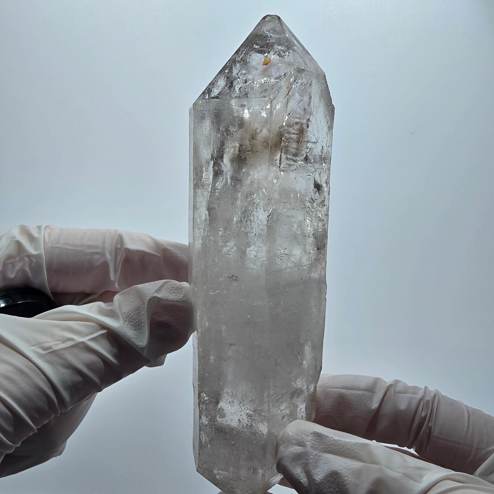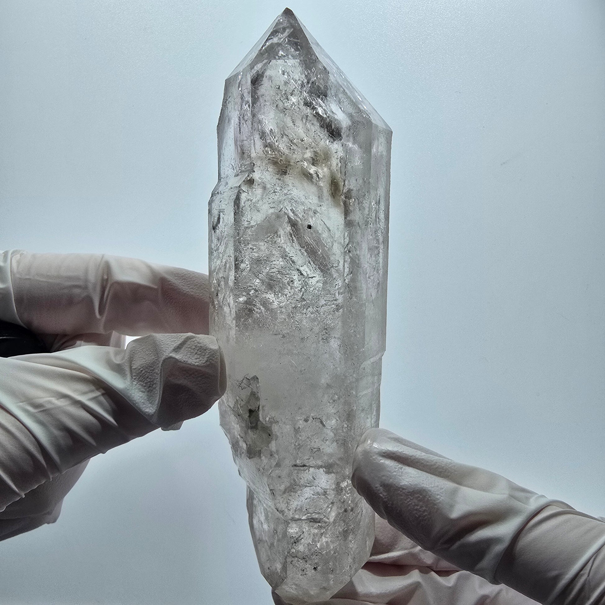 Dieser außergewöhnliche Doppelender Rauchquarz aus Namibia besticht durch seine seltene braun-weiße Transparenz und die charakteristischen skelettartigen Oberflächenstrukturen. Das Besondere: Fünf deutlich sichtbare Enhydro-Einschlüsse mit jeweils einer faszinierend beweglichen Luftblase machen diesen Kristall zu einem dynamischen Unikat für anspruchsvolle Sammler.
